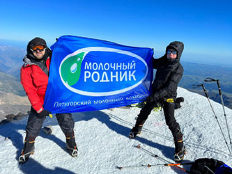 Флаг Агрофирмы «Село им. Г.В. Кайшева» на вершине Эльбруса водрузил Пётр Кайшев – внук основателя сельхозпредприятия.